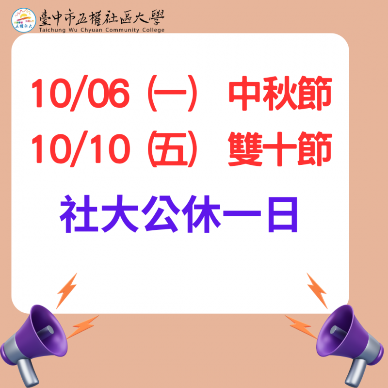 114年中秋節&雙十節服務時間異動及停課通知