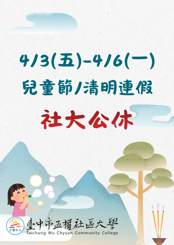 清明連假社大公休、課程順延一周